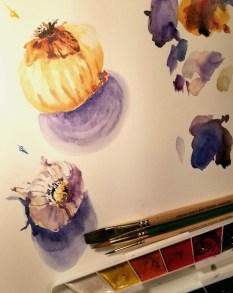 Set up two natural objects (or more), draw in contour and cross contour then paint. Also, keep in mind that overlap is more interesting than placing the objects side by side. Try to leave some reserve (the white of the paper) in your painting.